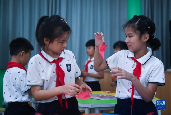 8月10日,湖州市吳興實驗小學(xué)的學(xué)生在“博學(xué)課堂”上學(xué)習(xí)剪紙。