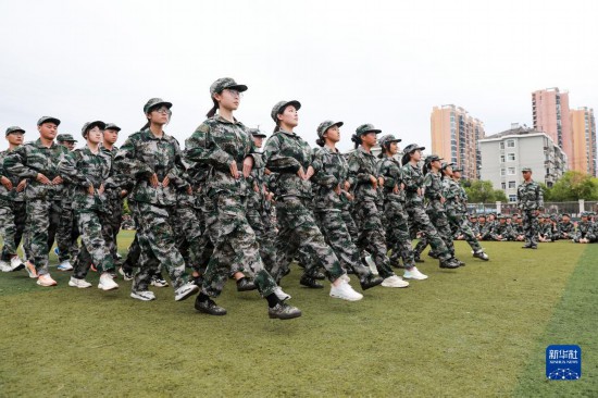 新學(xué)期來臨,安徽省淮北市的高中組織新生開展軍訓(xùn),鍛煉身體素質(zhì),磨礪意志品質(zhì)。