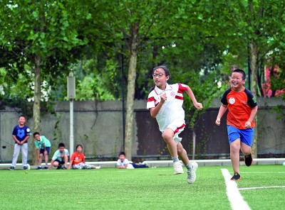 北京市海淀區(qū)中關(guān)村第二小學(華清校區(qū))學生在參與體育游戲“過關(guān)斬將”。新華社發(fā)