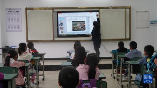 9月14日,老師在瀘定縣二郎山片區(qū)寄宿制學(xué)校給學(xué)生講述抗震救災(zāi)情況。