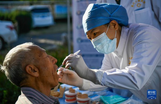 9月19日,醫(yī)生在河北省遵化市興旺寨鎮(zhèn)何家峪村為村民檢查牙齒。