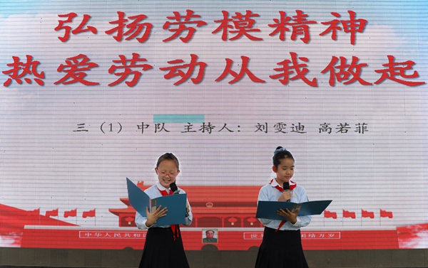 在活動(dòng)現(xiàn)場(chǎng),少先隊(duì)員們通過(guò)升國(guó)旗儀式、團(tuán)員老師講黨史、觀看主題視頻、主題朗誦等多種方式,向全校師生介紹了勞模榜樣的事跡、分享勞動(dòng)妙招和感悟。在場(chǎng)的同學(xué)們對(duì)勞動(dòng)、勞動(dòng)的重要性、勞模精神有了更新的認(rèn)識(shí)和理解——“勞模故事讓我很感動(dòng)”、“作為一名小學(xué)生,我要從點(diǎn)滴做起,學(xué)習(xí)好生活本領(lǐng),熱愛(ài)勞動(dòng)從我做起”……