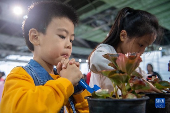 10月5日,在天華百卉園內(nèi),小朋友在學(xué)習(xí)種植技巧。