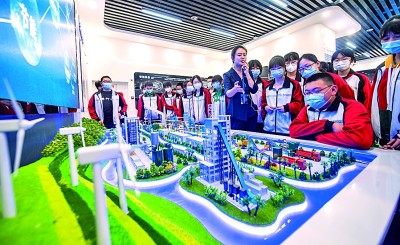西安市航天中學(xué)學(xué)生在航天科技集團(tuán)六院航天液體動(dòng)力展示中心參觀。新華社發(fā)