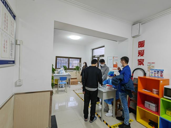 思政課教師深入宿舍協(xié)助做好核酸檢測。 北京市教委供圖