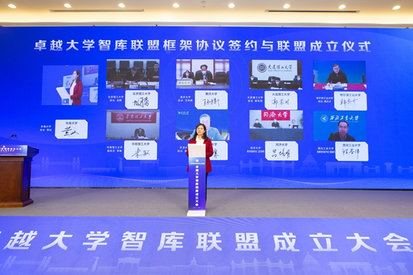 中國科學院院士、東南大學校長黃如和線上參會的各高校領導共同簽署卓越大學智庫聯(lián)盟框架協(xié)議。校方供圖