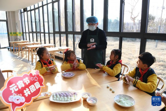 2月5日,合肥市建平實驗小學南艷分校學生在做湯圓。