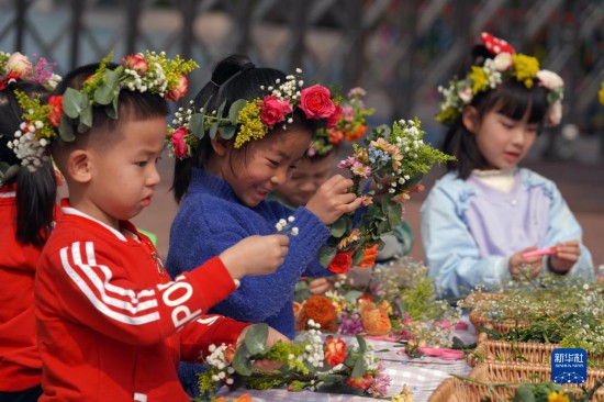 當(dāng)日,重慶市北碚區(qū)縉云幼兒園開展“編花環(huán) 迎春天”手工制作活動(dòng),孩子們?cè)诶蠋煹闹笇?dǎo)下,用枝條和鮮花編制成一頂頂多彩花環(huán),感受春天的氣息,喜迎春天的到來(lái)。