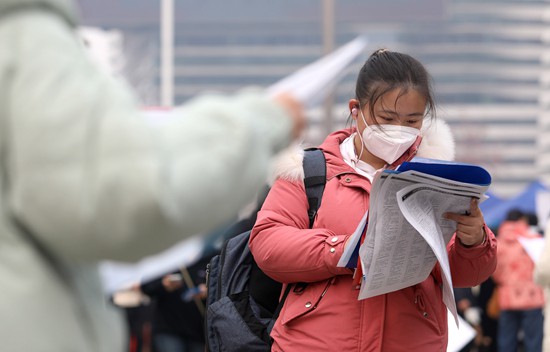 2月18日,在河北省藝術(shù)中心文化廣場,求職者在翻閱招聘信息,尋找工作機(jī)會。梁子棟/攝(新華社發(fā))