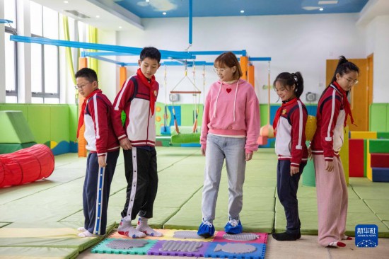 3月22日,寧波市江北區(qū)洪塘實(shí)驗(yàn)學(xué)校的心理教師在感統(tǒng)訓(xùn)練教室對(duì)學(xué)生進(jìn)行游戲式心理輔導(dǎo)。