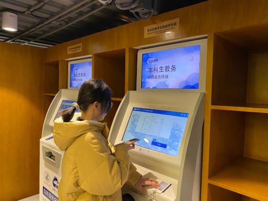 3月21日,華中科技大學學生楊淑慧在師生服務中心打印成績單。新華社記者李偉 攝