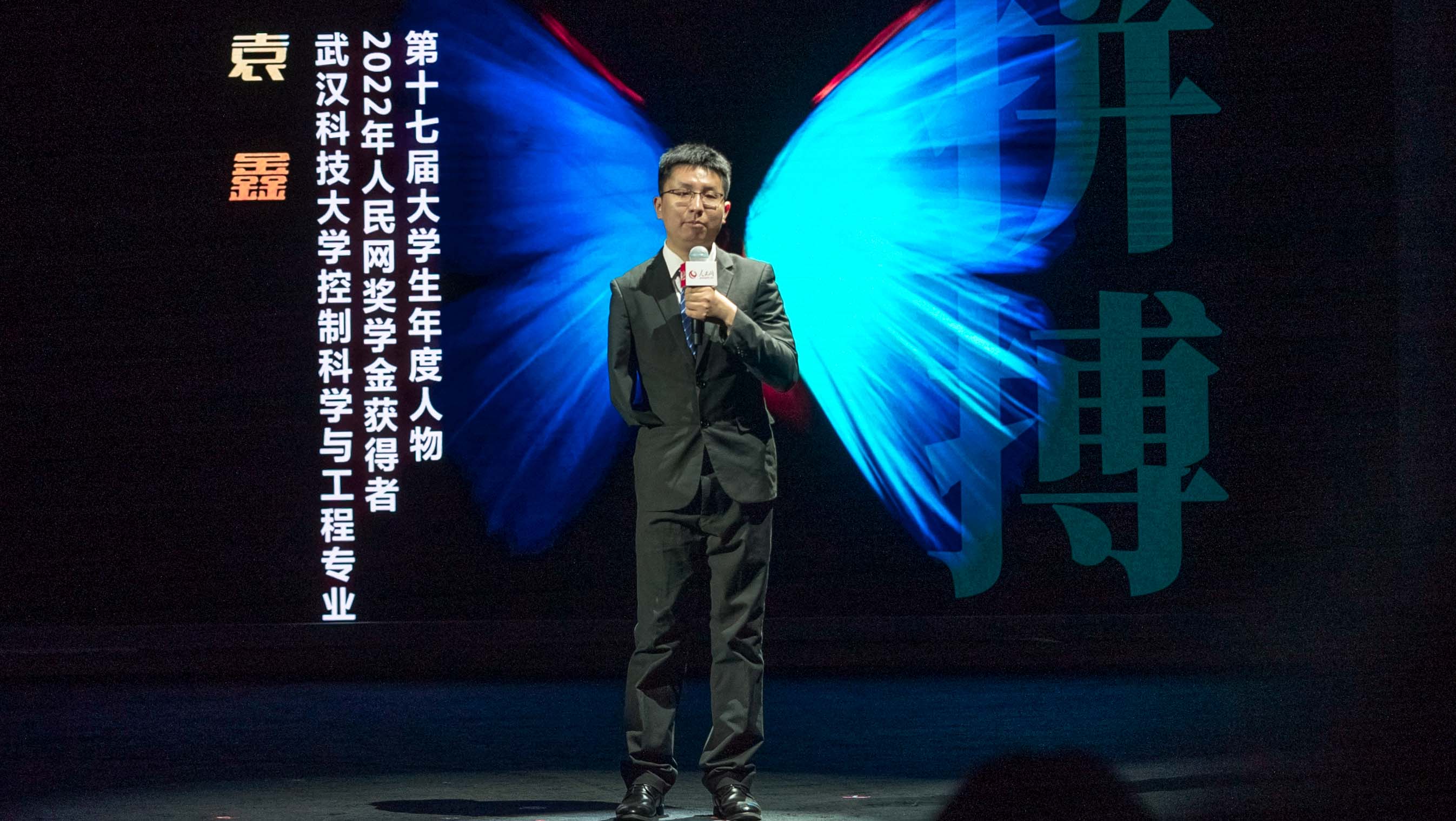 第十七屆大學(xué)生年度人物、2022年度人民網(wǎng)獎學(xué)金一等獎獲得者武漢科技大學(xué)控制科學(xué)與工程專業(yè)博士生袁鑫分享自己的故事。實(shí)習(xí)生韓華良 攝