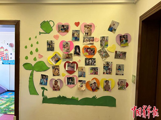 4月8日,北京市海淀區(qū)一家庭托育點(diǎn)的照片墻。中青報(bào)·中青網(wǎng)見(jiàn)習(xí)記者 賈驥業(yè)/攝