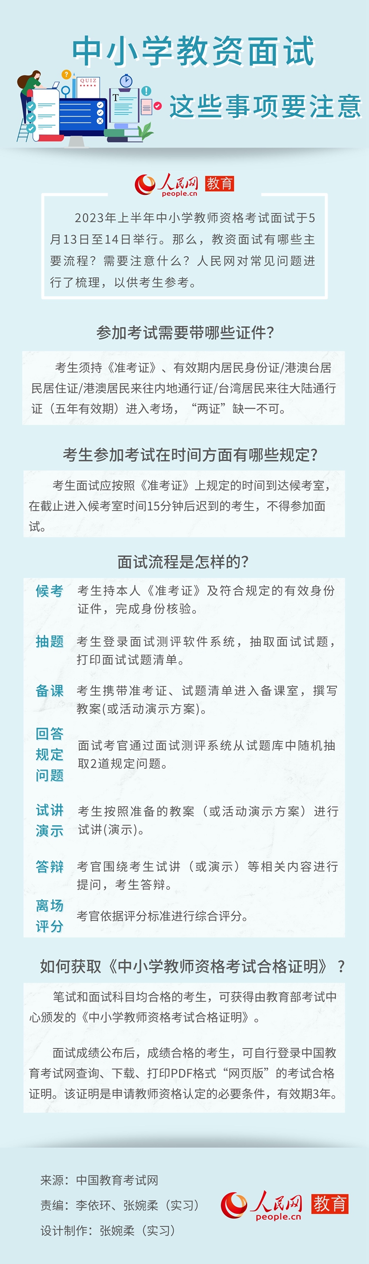 上半年中小學(xué)教資考試面試5月13日至14日舉行