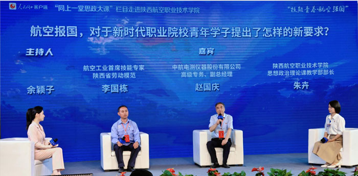 人民網(wǎng)漢中5月19日電 (記者林露 崔競(jìng)文 王鑫 李志強(qiáng))夢(mèng)想閃光,青春遠(yuǎn)航。18日,“人民網(wǎng)+”客戶端“同上一堂思政大課”欄目走進(jìn)陜西航空職業(yè)技術(shù)學(xué)院,在校園內(nèi)開展了豐富多彩的思政實(shí)踐系列活動(dòng),與來自全國各地的職業(yè)院校、航空領(lǐng)域代表企業(yè)的嘉賓共話“技能青春·航空強(qiáng)國”。