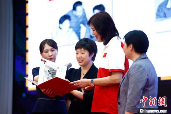 圖為陳經(jīng)綸中學(xué)向郎平贈送紀念品!≈行律缬浾 富田 攝