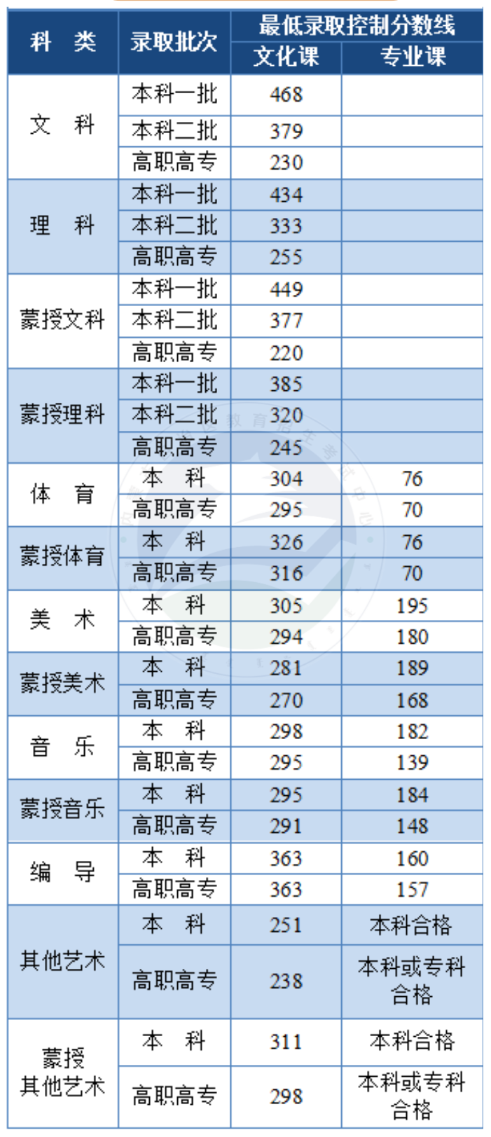 內(nèi)蒙古普通高考最低錄取控制分?jǐn)?shù)線