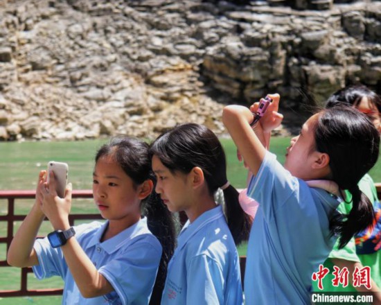 圖為參加研學(xué)游的學(xué)生游客拍下壯麗風(fēng)光!≈茏咏 攝