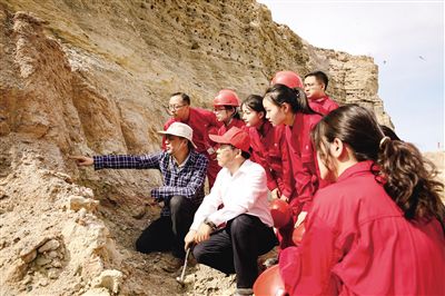 國(guó)家級(jí)教學(xué)名師朱筱敏與克拉瑪依校區(qū)學(xué)生進(jìn)行野外地質(zhì)實(shí)習(xí)。學(xué)校供圖
