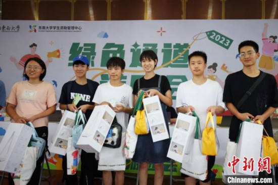 在綠色通道辦理入學(xué)的學(xué)生獲贈入校大禮包。泱波 攝