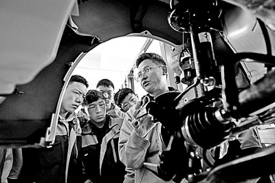 9月8日,在青海省果洛藏族自治州職業(yè)技術(shù)學(xué)校,汽車運(yùn)用與維修專業(yè)學(xué)生在實(shí)訓(xùn)課程上學(xué)習(xí)。 新華社發(fā)