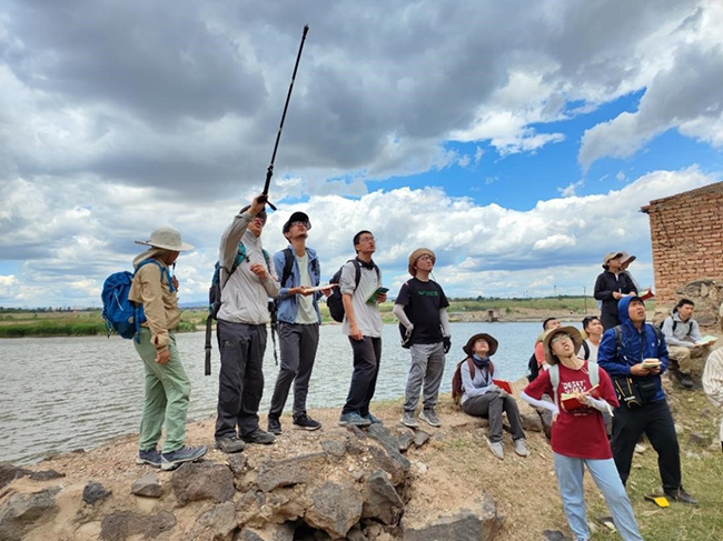 大同思政實(shí)踐團(tuán)成員在桑干河岸觀察地質(zhì)地貌。