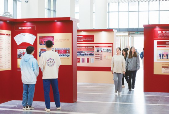 2023年4月25日,中國人民大學(xué)推出“習(xí)近平總書記考察調(diào)研中國人民大學(xué)一周年 走出一條建設(shè)中國特色世界一流大學(xué)新路”主題展。圖為學(xué)生參觀展覽。 中國人民大學(xué)供圖