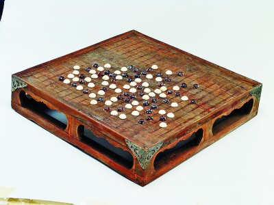 收藏于中國(guó)人民大學(xué)博物館的遼代銀絲網(wǎng)格木圍棋盤(pán)。資料圖片