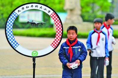 近年來,湖南省湘潭市雨湖區(qū)九華和平科大小學(xué)開發(fā)機(jī)器人、編程、無人機(jī)、機(jī)甲大師等科技特色課程,通過“科技課堂”培養(yǎng)學(xué)生的科學(xué)素養(yǎng)和動手能力,點(diǎn)燃孩子的“科學(xué)夢”。圖為4月11日,學(xué)生在無人機(jī)課上練習(xí)操控?zé)o人機(jī)穿越障礙物。新華社記者 陳澤國攝