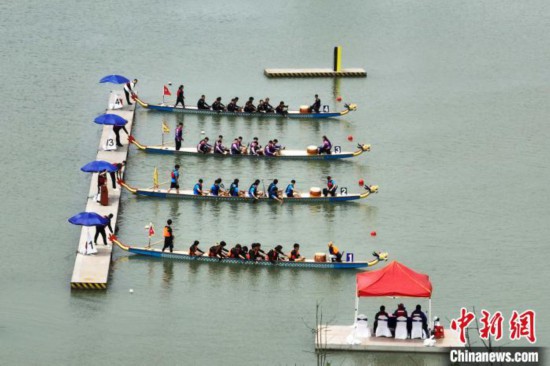 多支龍舟隊蓄勢待發(fā)。(無人機(jī)照片)陳家樂攝