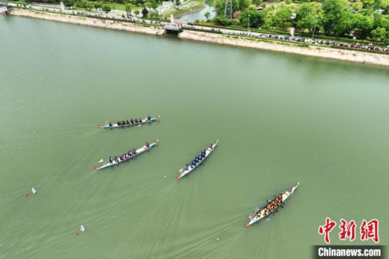 當(dāng)日,豐祥湖上鑼鼓喧天,隊員們揮汗如雨,奮楫向前。