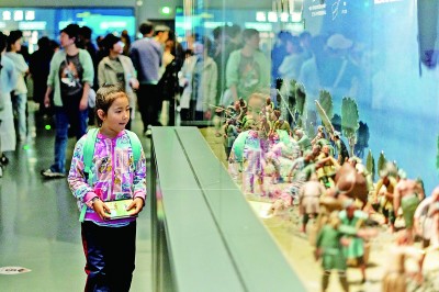 “五一”期間,各地博物館游人如織,“博物館熱”持續(xù)升溫。圖為5月3日,小朋友在江蘇南京城墻博物館內(nèi)參觀。新華社發(fā)