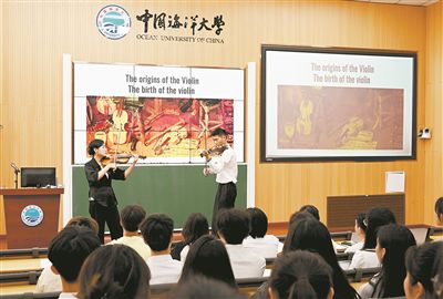 今年以來,中國海洋大學以建校百年為契機,積極探索美育教學社會實踐改革,倡導“讓美育走出課堂”,教演互促經(jīng)常性開展校外公益演出。圖為中國海洋大學藝術系學生在美育通識課上學習。