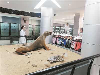 圖為黑龍江省綏芬河市托馬斯附屬幼兒園的學(xué)生在綏芬河海關(guān)綜合技術(shù)中心標(biāo)本館內(nèi)進(jìn)行實(shí)地觀摩體驗(yàn)。田源攝