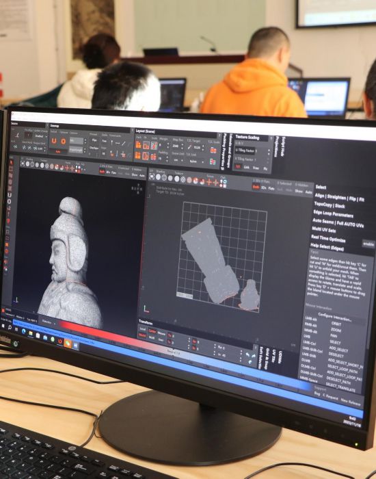 走進(jìn)文物數(shù)字研究中心實(shí)驗(yàn)室,三維掃描儀、全景相機(jī)、全息展臺(tái)等設(shè)備陳列一新?!斑@些不僅是教學(xué)工具,更是實(shí)戰(zhàn)武器?!睂I(yè)教師周權(quán)虎為文物與博物館學(xué)專業(yè)學(xué)生開授的“數(shù)字雕刻”課程,注重理論與實(shí)踐結(jié)合,是“文物+數(shù)字”課程共建體系下的教學(xué)創(chuàng)新。學(xué)生們通過學(xué)習(xí)掌握傳統(tǒng)技藝、藝術(shù)審美內(nèi)容的數(shù)字化表達(dá)能力,創(chuàng)作產(chǎn)出了許多優(yōu)秀的數(shù)字作品。