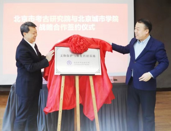 2024年1月,時(shí)任北京市文物局局長陳名杰和北京城市學(xué)院校長劉林共同為文物保護(hù)與修復(fù)科研基地揭牌