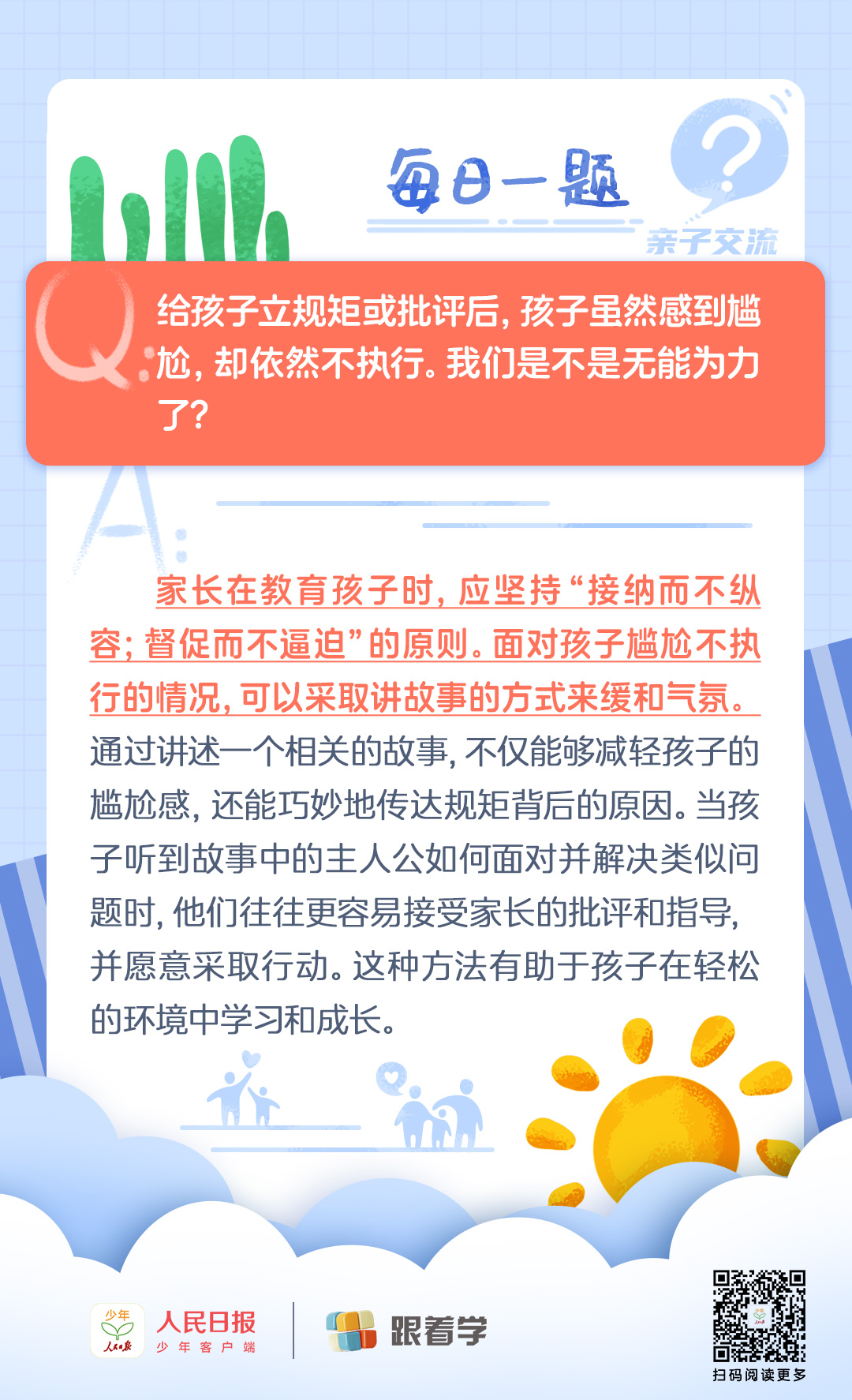 每日一題丨孩子做錯(cuò)事被批評(píng)后雖感尷尬卻仍不守規(guī)怎么辦?
