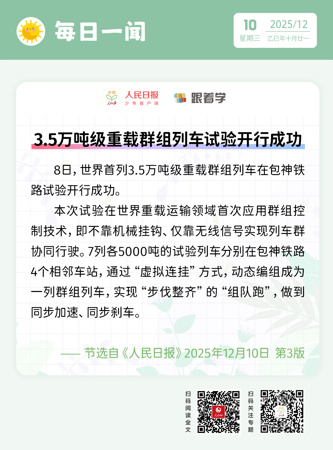每日一聞丨3.5萬噸級重載群組列車試驗開行成功