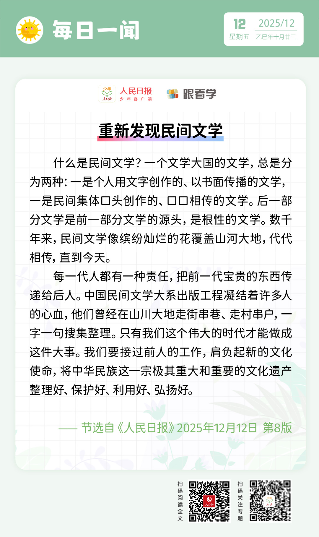 每日一聞丨重新發(fā)現(xiàn)民間文學(xué)